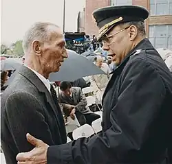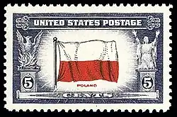 Karski also traveled to the United States, where on 28 July 1943 he met with President Franklin D. Roosevelt in the Oval Office, the first eyewitness to tell Roosevelt of the situation in Poland and the Jewish Holocaust.[11] Roosevelt asked no questions about the Jews.[12] Karski met with many other government and civic leaders in the United States, including Supreme Court Justice Felix Frankfurter, Cordell Hull, William Joseph Donovan, and Rabbi Stephen Wise. Karski presented his report to media, bishops of various denominations (including Cardinal Samuel Stritch), members of the Hollywood film industry and artists, but without result, as most people could not comprehend the scale of extermination that he recounted.[13][14][11] But Karski's accounts of the problems of stateless people and their vulnerability to murder helped inspire the formation of the War Refugee Board,[15] changing US governmental policy from neutrality to support for war refugees and civilians in Europe,[16] and after the war, inspiring the creation of the Office of High Commissioner for Refugees.