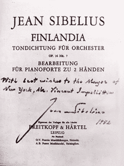 At this time, Sibelius held detailed negotiations with George Eastman, inventor of the Kodak camera and founder of the Eastman School of Music in Rochester, New York. Eastman offered $20,000 salary to teach for a single year,[59] and before Sibelius declined, negotiations were so firm that the New York Times published Sibelius's arrival as fact.[60]