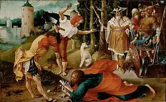 Jan de Beer was an exponent of Antwerp Mannerism and the only one of that movement who still enjoyed fame after his death. The Italian biographer Lodovico Guicciardini included de Beer in his list of famous Netherlandish artists of 1567.[1] Despite his contemporary reputation, the artist's name fell into complete obscurity at the end of the 16th century and was only rediscovered at the beginning of the 20th century. Art historians Georges Hulin de Loo and Max Friedländer played a key role in the rediscovery of the artist. In 1902 Hulin de Loo discovered the artist's signature on a sketch of Nine Male Heads (British Museum), which he published in 1913. Two years later Friedländer, in his study of Antwerp Mannerism, grouped various works under the notname Master of the Milan Adoration, a name chosen with reference to the central work in the oeuvre, the Adoration of the Magi in the Pinacoteca di Brera (Milan). In 1933 Friedländer identified that Master with de Beer. Friedländer considered de Beer to be one of the key figures of Antwerp Mannerism.[3]