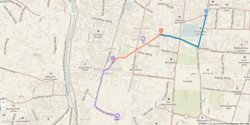 On the first day, the chariot is pulled from Jamal, Durbar Marg through Bhotahiti to Asan where it makes an overnight halt. The next day, the chariot is pulled through Indra Chok to Kathmandu Durbar Square where it makes its second stop. On the third day, the chariot is pulled through Maru and Chika: Mugha: Chikan Mugal to Lagan at the southern end of the historic section of Kathmandu.
