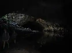 For the next three years, Jandamarra led a guerrilla war against police and British settlers. His hit and run tactics and his vanishing tricks became almost mythical. In one famous incident, a police patrol followed him to his hideout at the entrance to Tunnel Creek in the Napier Range, only for Jandamarra to mysteriously disappear, through the system of tunnels in the mountains.[1] Jandamarra's mother Jinny, his brother Barney, and his wife Mayannie (who had previously also had a sexual relationship with Robinson), travelled with him, along with a non-Bunuba man known as Captain, and several young women. The women would act as effective sentinels, warning of approaching police patrols.[6]