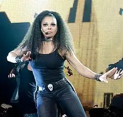 ![]() Jackson performing on her 2011 Number Ones, Up Close and Personal World Tour | |