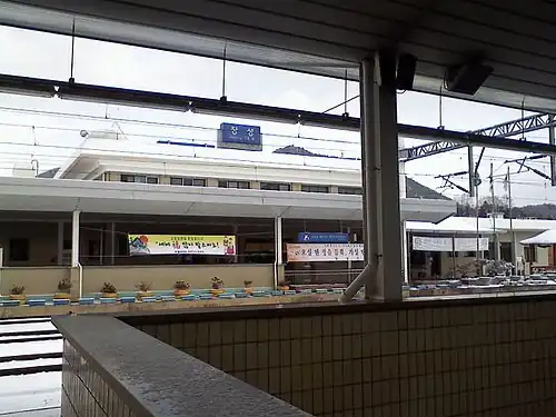 Jangseong station is a KTX station in Jangseong County, South Korea. It is on the Honam Line.