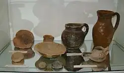 In the centre of the town, essential discoveries in Trench P1 included a built-up area (living quarters) with a lay-out in Central Asian style along a street, and a possible metal workshop, all dated to the 9th/10th centuries on the basis of coin finds.[5] Later excavations in this area since 2011 have been carried out to a greater depth, revealing several building phases of earlier date.