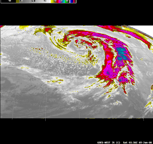 ![]() The January 2008 North American Superstorm nearing peak intensity, on January 4, 2008 | |