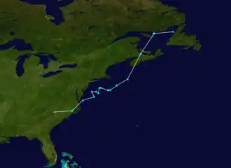 Map plotting the storm's track and intensity, according to the Saffir–Simpson scale