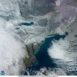 Satellite image of Northeastern U.S. snow cover following the nor'easter