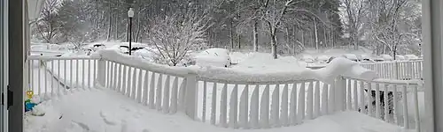A panoramic view of 21.5 inches (55 cm) of snow from the nor'easter burying the ground in Lexington, MA on February 2