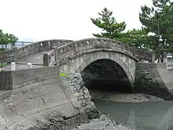 Kumamoto | Yatsushiro | Kannai Bridge; Former Gunchiku (ja) New Land Sluice Gates and Land Reclamation Levee; Kajiya Upper, Middle, and Lower Bridges; Rokuro Bridge; Kasamatsu Bridge; Akamatsu Megane Bridge (No.1); Group of Megane Bridges | Ozayabushi/Ozaya Meisho; Female Sumō (ja); Shibakuchibō-odori | Mizushima (Shiranui and Mizushima); Mugishima Castle (ja) (Yatsushiro Castle Sites); Yatsushiro Castle (ja) (Yatsushiro Castle Sites); Ozaya Sluice Gates; Iwanaga Sangorō's Grave (ja); Shiragadake Natural Stone Bridge | Gunchiku (ja) Niban-chō Sluice Gate | Shiroshima; Shōga Rice Terrace in Bishō District; Bunsei Jinja; Tanigawa Bridge; Common Rushes and Common Rush Wares; Twisted Tōrō (Wakamiya Jinja (ja)); Twisted Tōrō (Sugawara Jinja) | [186] [187] | |