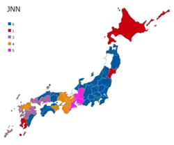The Japan News Network (JNN; Japanese: ジャパン・ニュース・ネットワーク, romanized: Japan Nyūsu Nettowāku) is a Japanese commercial television network run by TBS Television, owned by TBS Holdings (which is a part of the Mitsui Group keiretsu and highly cooperating with the Mainichi Shimbun despite the lack of the latter's shareholding in TBS Holdings). The network's responsibility includes the syndication of national television news bulletins to its regional affiliates, and news exchange between the stations. Its affiliate stations also broadcast non-news programs originating from TBS Television. Founded on 1 August 1959,[1]: 150–151 JNN is made up of 28 full-time affiliates.