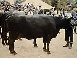 All wagyū cattle derive from cross-breeding in the early twentieth century of native Japanese cattle with imported stock, mostly from Europe.[4]: 5 In the case of the Japanese Polled, the principal foreign influence was from the Scottish Aberdeen Angus breed.[1]