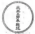 Japanese participation in World War I was commemorated by medals created on November 6, 1915 by Imperial Edict No. 203.[7] Two very similar medals were issued, one for service in 1914-15 and the other for the period 1914-20. If a person earned both they could only wear the latter.[8]
