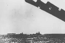 In April 1942, Hiei and the Third Battleship Division joined five fleet carriers and two cruisers in a massive raid against British naval forces in the Indian Ocean.[19] On 5 April—Easter Sunday—the Japanese fleet attacked the harbor at Colombo, Ceylon while seaplanes from the cruiser Tone spotted two fleeing British cruisers, both of which were later sunk by aerial attack.[22] On 8 April, Japanese carrier aircraft attacked the Royal Navy base at Trincomalee, only to find that all of Admiral James Somerville's remaining warships in the British Eastern Fleet had withdrawn the previous night. Returning from the attack, a floatplane from Hiei's sister ship Haruna spotted the aircraft carrier HMS Hermes, which was quickly sunk by massive aerial attack.[23] The fleet then returned to Japan, arriving at the home bases on 23 April.[5]