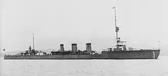 The Tenryū class was designed to act as flagships for destroyer flotillas. The design represented an intermediate class between the light cruiser and the destroyer, which had few counterparts in other navies of the time, although it was inspired by a similar concept to the Royal Navy's Arethusa and C-class cruisers.[1] The IJN and Japanese shipbuilding industry were still closely associated with that of the British because of the Anglo-Japanese Alliance, and were able to improve on that experience.