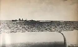 Shiranui was assigned to the IJN 9th Fleet, and escorted convoys to Palau, Wewak and Hollandia during January and February 1944. On 1 March, she was reassigned to the IJN 5th Fleet and was assigned to northern waters, making patrols from her base at Ominato Guard District in April, and returning with the cruisers Nachi and Ashigara to Kure at the start of August. During the Battle of Leyte Gulf on 24–25 October 1944, Shiranui was assigned to Vice Admiral Shōji Nishimura's diversionary force at the Battle of Surigao Strait, during which she fired torpedoes at the American fleet, but scored no hits, before assisting in chasing off PT boats with surface gunfire. After the battle, she departed Coron to search for the missing cruiser Kinu and destroyer Uranami, and took on survivors from the destroyer Hayashimo. On 27 October she was sunk with all hands by dive-bombers from the aircraft carrier USS Enterprise,[6] 80 miles (130 km) north of Iloilo, Panay (12°0′N 122°30′E / 12.000°N 122.500°E).[7]