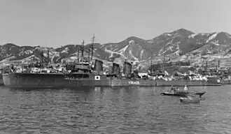 ![]() Yūkaze anchored at Kure with other Japanese destroyers after the surrender of Japan, October 1945