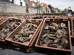 - ^ Grangeré, K.; et al. (2009). "Modelling the influence of environmental factors on the physiological status of the Pacific oyster Crassostrea gigas in an estuarine embayment; The Baie des Veys (France)" (PDF). Journal of Sea Research. 62 (2–3): 147–158. Bibcode:2009JSR....62..147G. doi:10.1016/j.seares.2009.02.002.