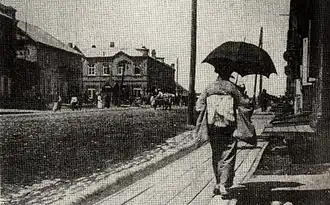 ![]() A kimono-clad woman walks down Svetlanskaya Street in Vladivostok, currently the capital of Primorsky Krai, c. 1910 | |