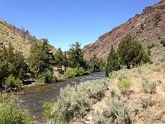 The Jarbidge River is a 51.8-mile-long (83.4 km),[3] high elevation river in Elko County, Nevada, and Owyhee County, Idaho, in the United States. The Jarbidge originates as two main forks in the Jarbidge Mountains of northeastern Nevada and then flows through basalt and rhyolite canyons on the high plateau of the Owyhee Desert before joining the Bruneau River.