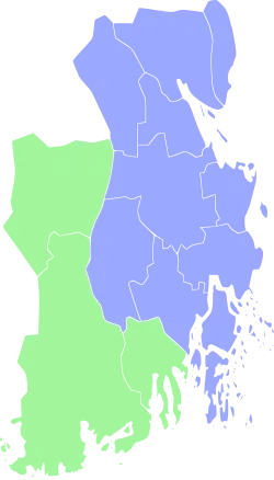 The former countships of Jarlsberg and Larvik were merged into a county in 1821. Jarlsberg and Larvik's County (Jarlsberg og Larviks amt) were renamed Vestfold in 1919.[1]