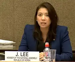 Lee was excluded from the party's list for the 2016 election[8] and left office on May 29, 2016. Lee left the Saenuri Party after the 2016 election. She returned to politics in 2020 ahead of the 2020 South Korean legislative election as a candidate for the Justice Party.