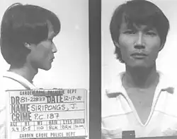![]() Siripongs in a 1981 police mugshot | |