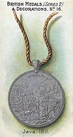 The Java Medal is a campaign medal awarded by the Governor-General of India to soldiers of the armies of the Honourable East India Company (HEIC) who participated in the Invasion of Java in August and September 1811, during the Napoleonic Wars.[1]