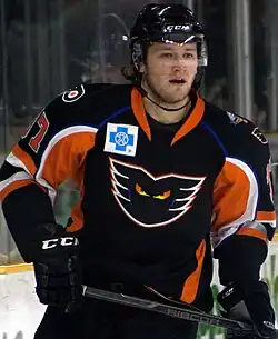 Jay Rosehill (born July 16, 1985) is a Canadian former professional ice hockey left winger who played for the Toronto Maple Leafs and the Philadelphia Flyers of the National Hockey League (NHL), and the Manchester Storm of the Elite Ice Hockey League (EIHL).[1] Rosehill was mostly known as an enforcer in hockey. He was selected by the Tampa Bay Lightning in the 2003 NHL Entry Draft.[2]
