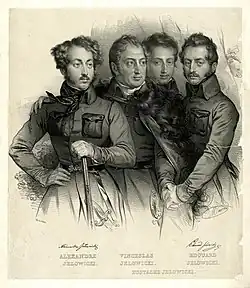 In 1830 the Jełowicki of Podolia demonstrated their patriotism in the November Uprising.[9] Wacław Jełowicki and his three sons Edward, Aleksander and Eustachy joined the battle in May 1831 but Waclaw momentarily separated from his sons was felled by a bullet.[10][11]