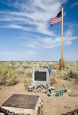 Also known as the Jordan Valley Hamlet Cemetery, the interment site itself is additionally host to five other graves from the late 1880s.[28] A plaque laid nearby at Inskip Station lists their names beside that of "J.B. Charbonneau", along with the inscription: