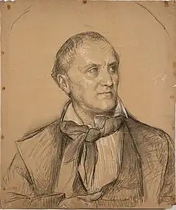He was a radical in politics, and took an active part in the French Revolution of 1848. His painting "Scene during the eruption of Vesuvius" is displayed in the Museum of Nantes. His principal writings were "Études progressives des têtes du Cénacle peint a Milan par Leonard de Vinci" (1827) and "Gros et ses ouvrages" (1867).