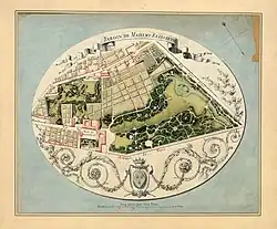 Thanks to a recommendation from Cardinal de Bernis, in 1777 he was named Inspector for the Bâtiments du roi, and served in that capacity until the Revolution.[2] His duties included caring for the King's stables, kennels and "Potager du Roi" (kitchen garden) at Versailles Palace. He also rebuilt the hunting lodge, and redesigned the interior of the chapel, which was later destroyed. In 1783, he began working as an official architect for the King's sister, Madame Élisabeth, at Domaine de Montreuil. There, he built a circular chapel and developed an Anglo-Chinese garden.[3]