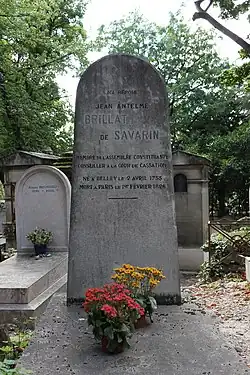 On 2 February 1826, at the age of seventy, Brillat-Savarin died in Paris having attended a service in the Basilica of Saint-Denis while already having a cold, which turned to pneumonia.[35] He was buried at the Père Lachaise Cemetery.[36]