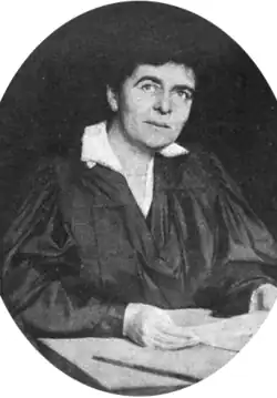 In 1933, the former magistrate sued the producers of a play titled Four O'Clock, because it included a corrupt woman judge that she believed was a damaging reference to her own legal troubles.[21][22] The producers agreed to change the character's gender to settle the suit.[23] In 1936 her essay "The Marriage Problem" appeared in American newspapers, predicting a constitutional amendment to make marriage and divorce laws more uniform across the United States.[24]