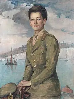 Knox was appointed Director, Auxiliary Territorial Service on 21 July 1941. She was given the acting rank of chief controller (equivalent to major general), while holding the war substantive rank of senior commander.[9] This made her the world's youngest general at that time.[2] One of her first actions as Director was to design a new, well fitting uniform for all ranks of the ATS.[10] She was promoted to war substantive controller (equivalent to colonel) and made temporary chief controller on 21 July 1942.[11] She travelled to Canada in September 1942 to inspect the Canadian Women's Army Corps and assisted in its recruiting campaign.[12] She returned to the UK in November following the seven-week trip.[13]
