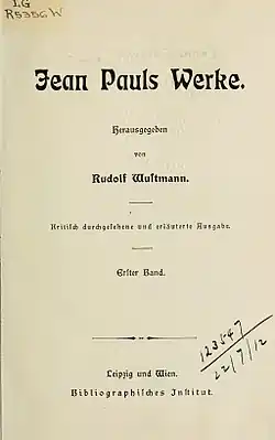 - Jean Paul. Jean Pauls Werke / herausgegeben von Rudolf Wustmann. 4. Leipzig und Wien: Bibliographisches Institut.