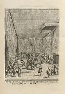 Puget de la Serre returned to France some time before the death of Marie de Medicis, in 1639 at the latest, and was fortunate enough to be received favourably by King Louis XIII of France and the Cardinal de Richelieu, who granted him a pension of 2000 écus. Puget may have owed his good fortune to the influence of his cousin, Pierre Puget de Montauron, a leading financier of the day.[2]