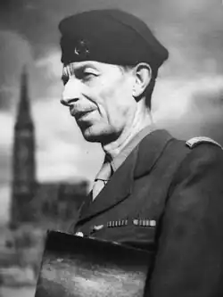 By 1940, he had been given command of the 2nd Armored Cuirassier Regiment. His regiment attempted to block the German blitzkrieg in Belgium, but, like so many other French units, was forced to retreat. When France fell to the Nazis, Touzet du Vigier, now serving the Marshal Petain's Vichy regime, was chosen to head the cavalry department of the army headquarters in Versailles. However, Touzet du Vigier secretly collaborated with the French resistance. His superiors, who ignored his underground activities, sent him to Mascara, Tunisia, where he took command of a sub-division.[2] When the Allies invaded Africa, Touzet du Vigier switched sides to that of De Gaulle's Free French.