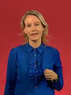Van der Laan ran for member of parliament again in the 2021 general election, being placed thirteenth on D66's party list.[31] During the campaign, she said that politics should pay more attention to sports, calling it neglected and important for fighting obesity.[11][32] Van der Laan was elected into the House of Representatives with 10,489 preference votes, and she was installed on 31 March.[5][33] Her specialities within D66 were higher education, science, emancipation, sports, health care prevention, and long-term care, and she is on the Committees for Education, Culture and Science; for Health, Welfare and Sport; for Justice and Security; and for Social Affairs and Employment. She is also a member of the Dutch parliamentary delegation to the Council of Europe.[7][34]