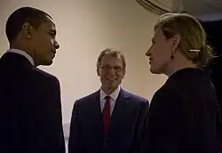 Barack Obama , Tom Daschle , and Jeanne Lambrew.