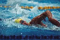 ![]() Close up of Hardy in action at the pool at the 2000 Summer Paralympics | |||||||||||||||||||||