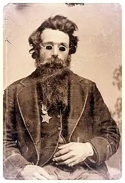 For extraordinary heroism on 1 July 1863, while serving with Company H, 7th Wisconsin Infantry, in action at Gettysburg, Pennsylvania, for unsurpassed courage in battle, where he had both eyes shot out.