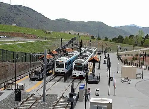 Jefferson County Government Center–Golden station (sometimes stylized and abbreviated as JeffCo Gov't Ctr•Golden) is an at-grade light rail station on the W Line of the RTD Rail system. It is located near the intersection of 6th Avenue and Johnson Road, on grounds of the Jefferson County Government Center in Golden, Colorado, after which the station is named.[1]