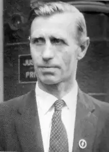 Hamm had been a minor figure in the BUF, but his time in the prison camps had increased his support for Mosley.[7] Indeed, such had been his low standing in the movement that Mosley did not know who Hamm was and for a time struggled to spell Hamm's surname properly.[2] Nonetheless, Hamm quickly became the most vigorous and vocal of Mosley's post-internment supporters.[8]