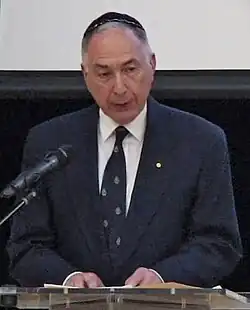 ![]() Rosenfeld speaks at a Jewish Holocaust Centre event in 2020 | |