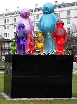 Jelly Baby Family, a sculpture by Mauro Perucchetti, near to London's Marble Arch.
