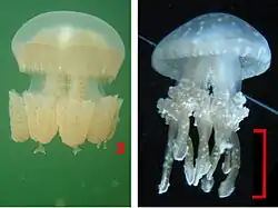 - ^ Dawson, Michael N; Hamner, William M (December 2003). "Geographic variation and behavioral evolution in marine plankton: the case of Mastigias (Scyphozoa, Rhizostomeae)" (PDF). Marine Biology. 143 (6): 1161–1174. Bibcode:2003MarBi.143.1161N. doi:10.1007/s00227-003-1155-z. S2CID 30556970.