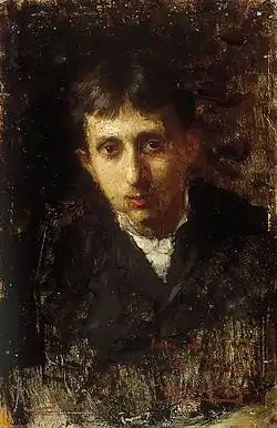 At first, he studied law, then completed his art studies in Munich and Paris. There, he studied for four years at the Bavarian royal academy under teachers Hackl, Benczúr and Löffler. He spent a year in Paris under the leadership of A. Morot. He created life pictures with a sentimental tone and theme. In 1884, he exhibited his paintings «After Trial» and «Thoughts» for the first time in the gallery of the national fine arts company in Budapest. He won the Ráth prize at the Műcsarnok exhibition in 1892 with his painting "Widow", and the Károlyi prize at the 1895 exhibition with his painting "The End". His painting of the same can be found in the gallery of the national museum. Later, he painted portraits of the children of noble families.