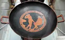 The Jena Painter was an ancient Greek vase painter, active in Athens around 400 BC. He mainly painted kylikes in the red-figure technique. His stylistic and chronological place was first determined by the British Classical archaeologist, John D. Beazley. Beazley chose the conventional name "Jena Painter" because a large proportion of the artist's surviving works were in the possession of Jena University. The majority of his 91 known vessels were discovered in the Kerameikos, the potters' quarter of ancient Athens, in 1892. Many of his vessels were exported, for example to Etruria and North Africa. The Jena Painter appears to have had two assistants whose work is described as style B and style C. The Jena Painter would paint the internal images of bowls, and the style B assistant their outsides. The work of the style C assistant is known only from, bowl skyphoi and footless bowls. In contrast to his assistants' rather casual drawings, the Jena Painter is distinguished by his fine and careful drawing style and the vividness of his compositions. The Q Painter and the Diomedes Painter worked in the same workshop as the Jena Painter.