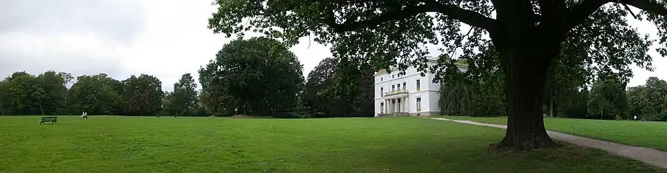 Caspar Voght acquired the area along with further nearby fields near Flottbek village from 1785 to 1805.[1] There were four parts: Süderpark (Southern park, today's Jenisch park), Norderpark, (Northern park, today Loki-Schmidt-Garten, Hamburg's botanical garden), Osterpark (Eastern park, today partly a golf course), and Westerpark (Western park, tree nursery intermittently, today Westerpark again). Voght had been inspired by the Leasowes estate of English poet William Shenstone. The area was planned as a rural or ornamented farm and a Mustergut (model farm). He designed it along with landscape gardener James Booth.[1]